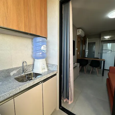 A mini-kitchen is provided at Flat Centro De Porto De Galinhas Apartment Guests can relax on a terrace.